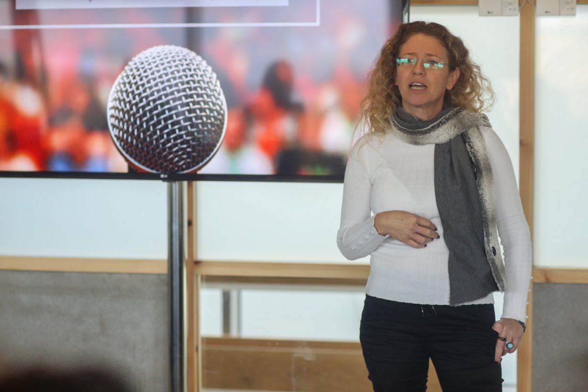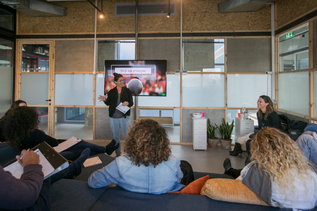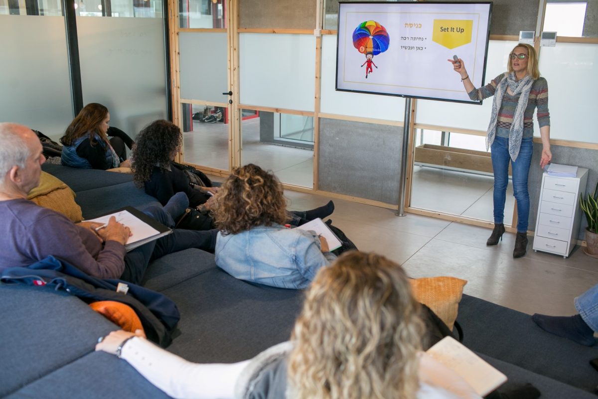 היכולת שלה לתת מרחב בטוח ומוגן, אפשרה לשים את הפחדים (שכולם הביאו מהבית) בפינה ואחרי תרגול קצר ונשימות קלות, כולם קפצו ראש ותרגלו בפעם הראשונה, את הפתיח של ההרצאה. בגרביים.